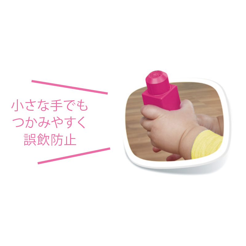 小さな手でも握ったり、積み重ねたりしやすいかたすぎず程よく柔らかい計算しつくされた設計力の弱い子どもでも簡単に取り外しできる