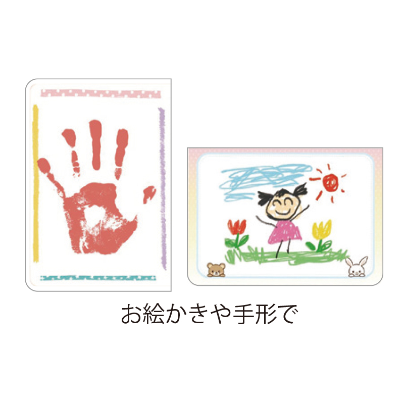 しっかり厚手の紙で、中のスペースには写真を、裏側には手形やお絵かきをして思い出に残るお誕生日カードが作れます。安心の角丸仕様