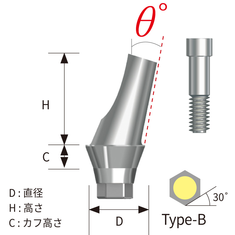 ARアングルドアバットメント(Hex)Type-B[BIOTEM] (M)ミニ(D)φ4.5mm(H)7.0mm θ25°(C)2.0mm