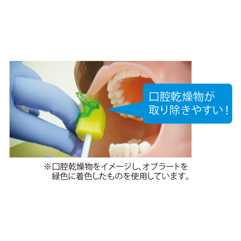 べたつき感の無い水分たっぷりのジェルが口腔内の乾いた汚れに浸透します。これにより保湿剤では難しかった口腔内乾燥物の除去を容易にします。