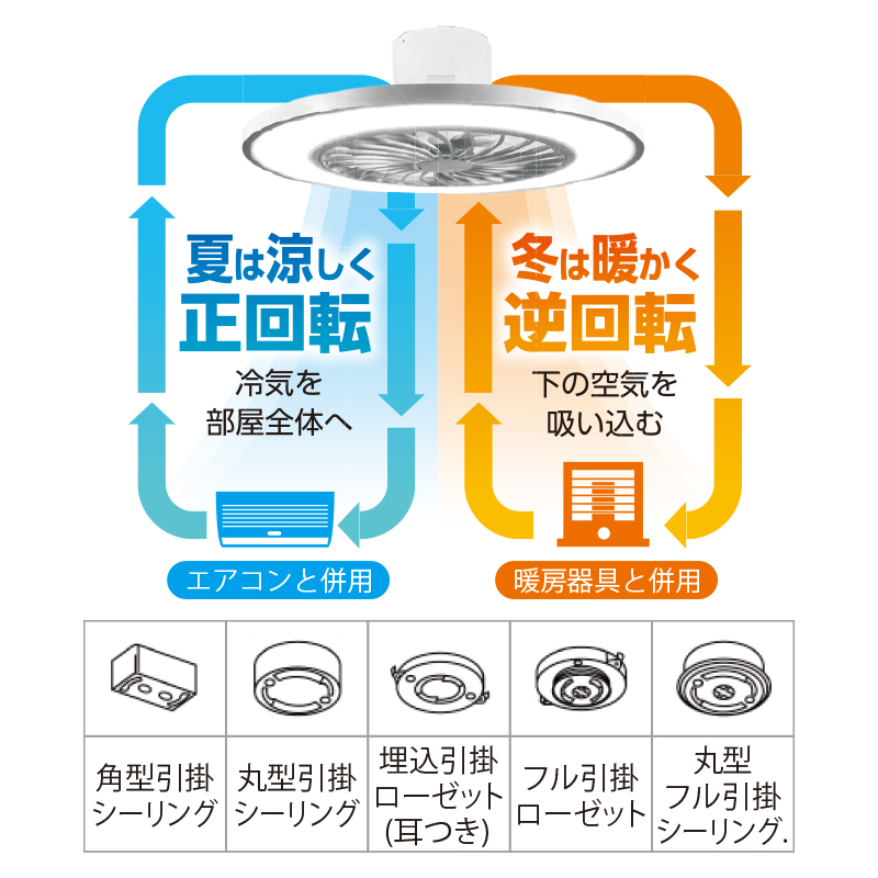 冬期は天井の暖気を下に送り、暖房効率UP