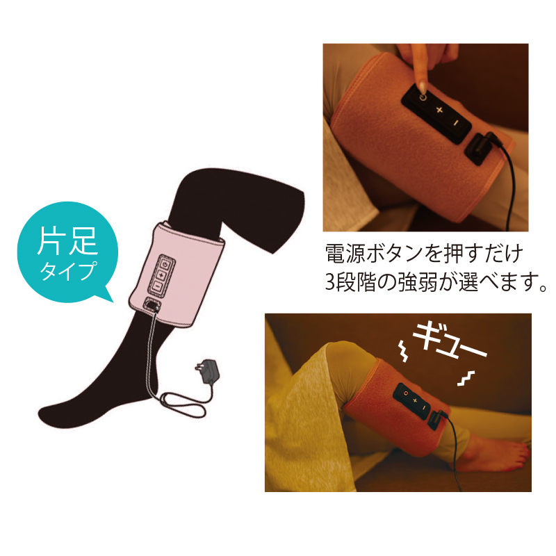 強力ポンプがエアバッグにガンガン空気送りふくらはぎを締めつけます。商品詳細