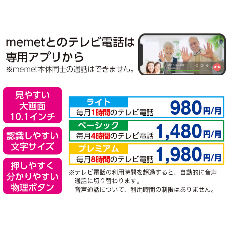memetとのテレビ電話は専用アプリから