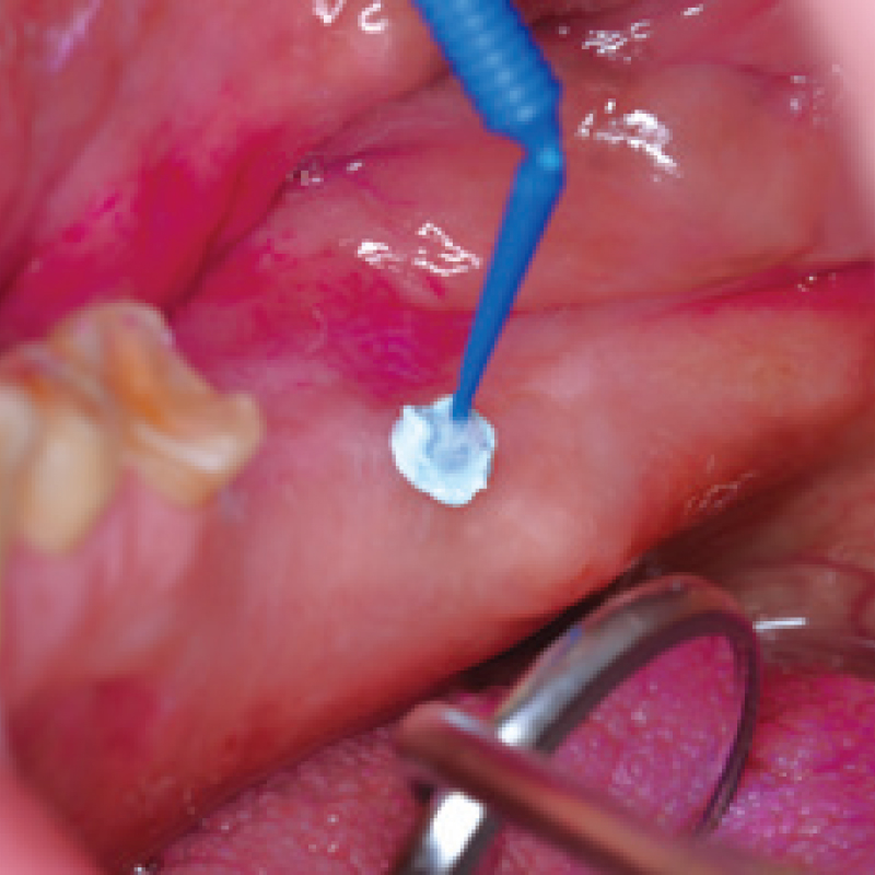 シリンジに入ったペーストで義歯の不適合状態を簡単にマークできます。ペースト色:ライトブルー