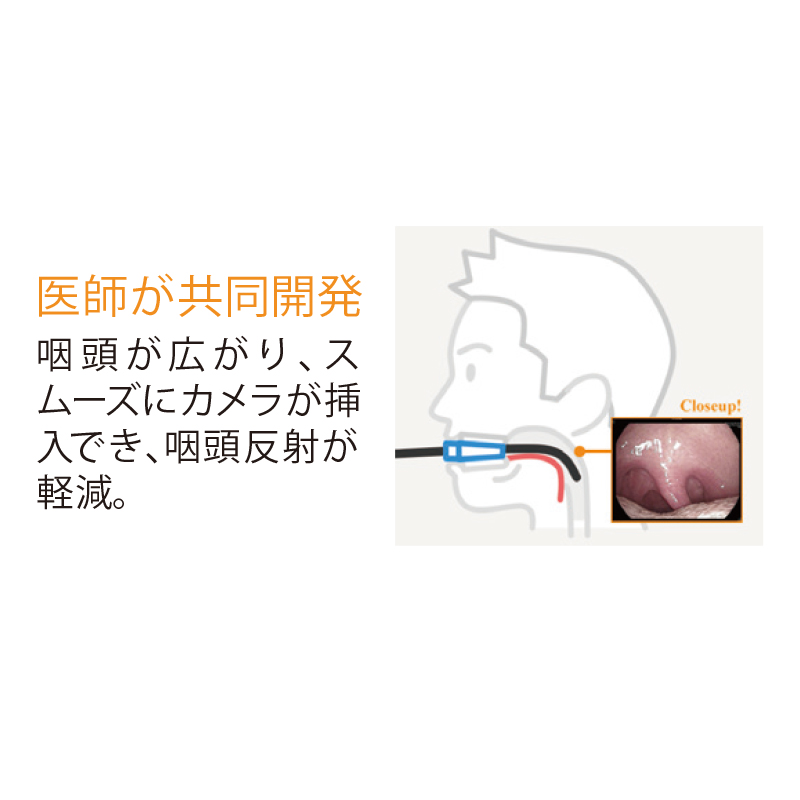医師が共同開発咽頭が広がり、スムーズにカメラが挿入できる