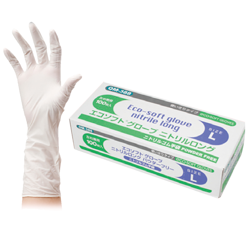 耐油性、耐薬品性、耐突き刺し特性の優れたニトリルゴム製ディスポ手袋全面エンボスで器具類洗浄用途に