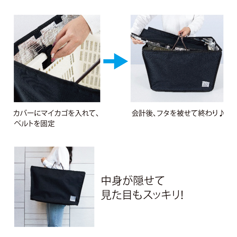 いつものマイカゴを丸ごとカバー。内側はアルミ保冷素材を使用。