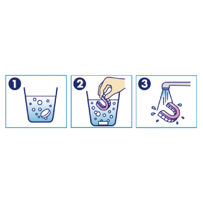 5分間の漂白洗浄でにおいを消臭できます。中性で、マウスピースやリテーナーに毎日使うことで除菌・洗浄・消臭効果が増します。