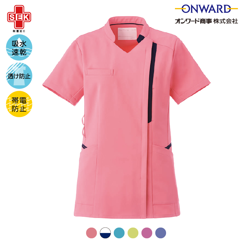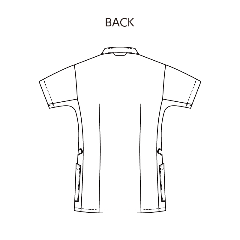 ●右胸ポケット、両腰二重ポケット、左胸下PHS・スマートフォン対応ポケット、右腰二重ループ、後ろ衿下ストラップ留めフラップ【制菌加工】【帯電防止】【ストレッチ】【吸水速乾】【透け防止】【形態安定】【工業洗濯】