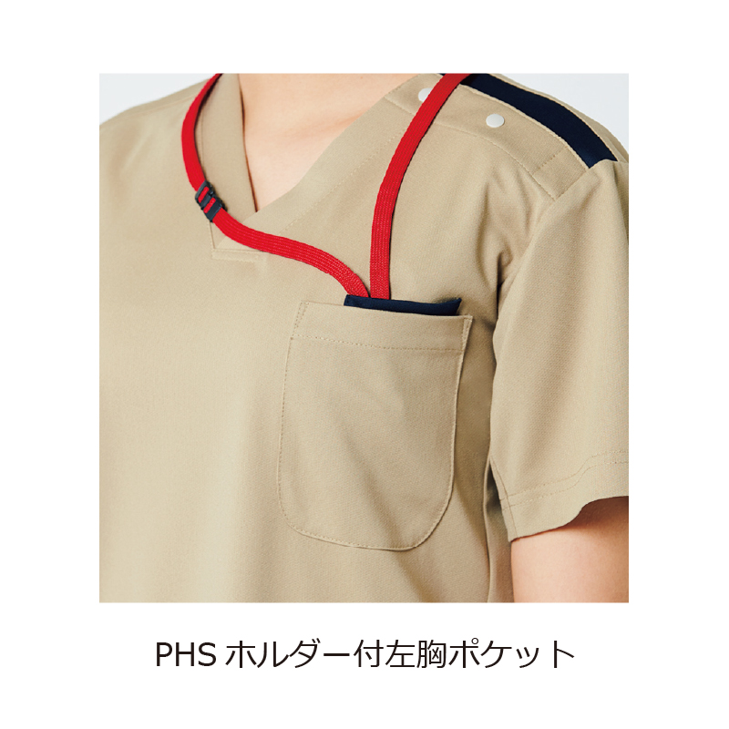 仕様/左胸ポケット(PHSホルダー付き)、両腰ポケット、両脇ループ、両脇スリット、後ろ襟下ストラップ留めフラップ、左肩留め具2個