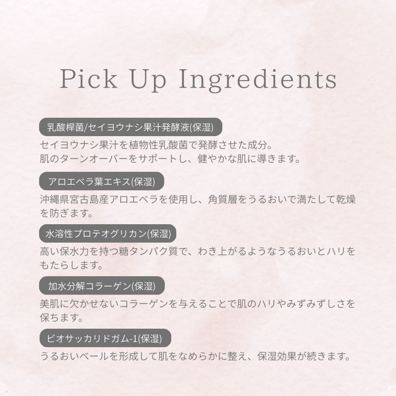高い保水力を持つ糖タンパク質で、わき上がるようなうるおいとハリをもたらします。