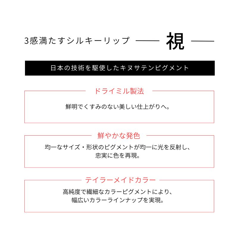 ー3感満たすシルキーリップー【視】日本の技術を駆使したキヌサテンピグメント