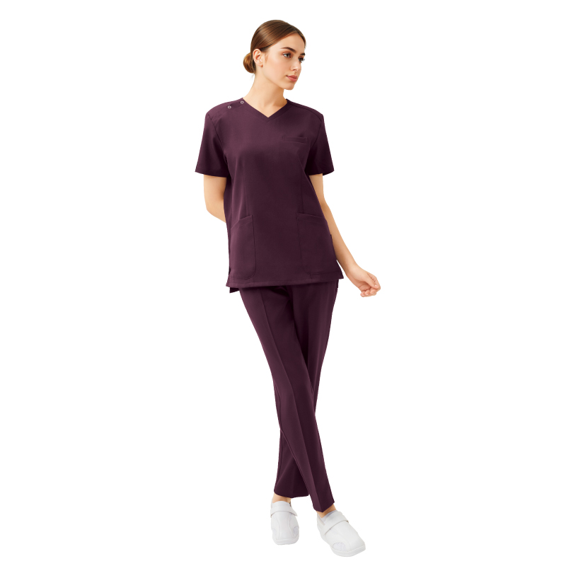 かぶりタイプながら女性らしいシルエットのスクラブ【制電】【ストレッチ】【吸水速乾】【イージーケア】