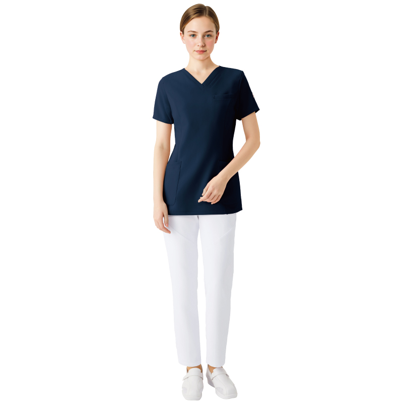 ヘアもメイクも崩れにくいワンピースみたいに「はいて着るスクラブ」合わせやすいシンプルデザイン