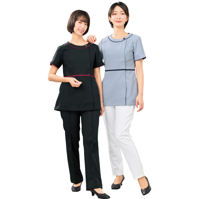 襟元のボタンが映える、親しみやすいデザイン