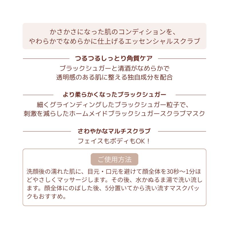 かさかさになった肌のコンディションをやわらかでなめらかに仕上げるエッセンシャルスクラブ。