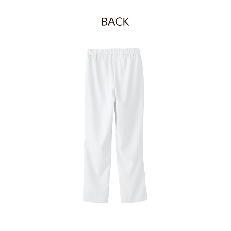 総ゴムウエスト(ひも入り)、両脇ポケット(右ダブルポケット)、右ウエストループ、裾上げ済