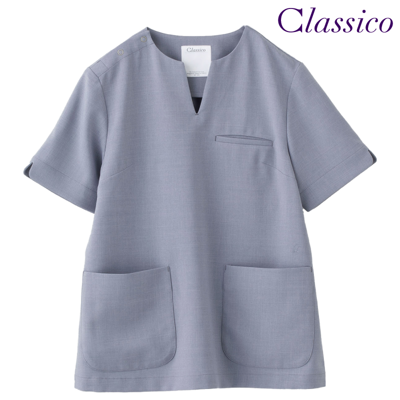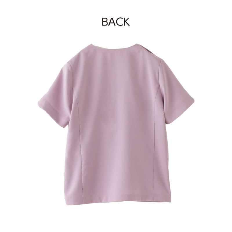 軽やかで爽やかな印象の杢調素材。 夏はもちろん、オールシーズン通して快適な着心地を実現。デコルテラインを美しく見せるキーネック、丸みのある袖口のスリットなど身体を美しく見せるすっきりとしたシルエット。