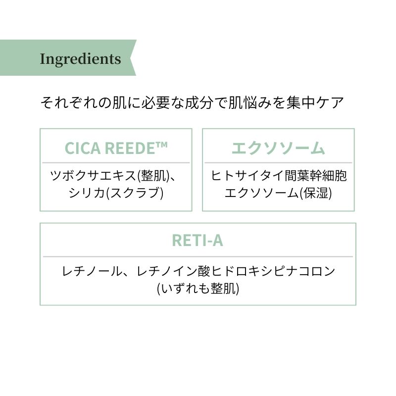CICA REEDLE…ツボクサエキス(整肌)、シリカ(スクラブ)