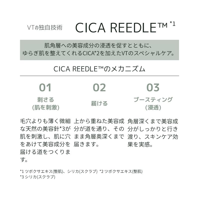 肌角層への浸透力を助けるCICA REEDLE*1は、マイクロサイズのミネラル由来の微粒子成分。