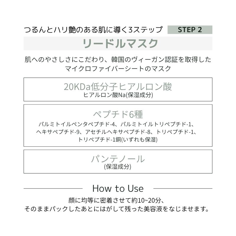 つるんとハリ艶のある肌に導くリードル3ステップマスク。