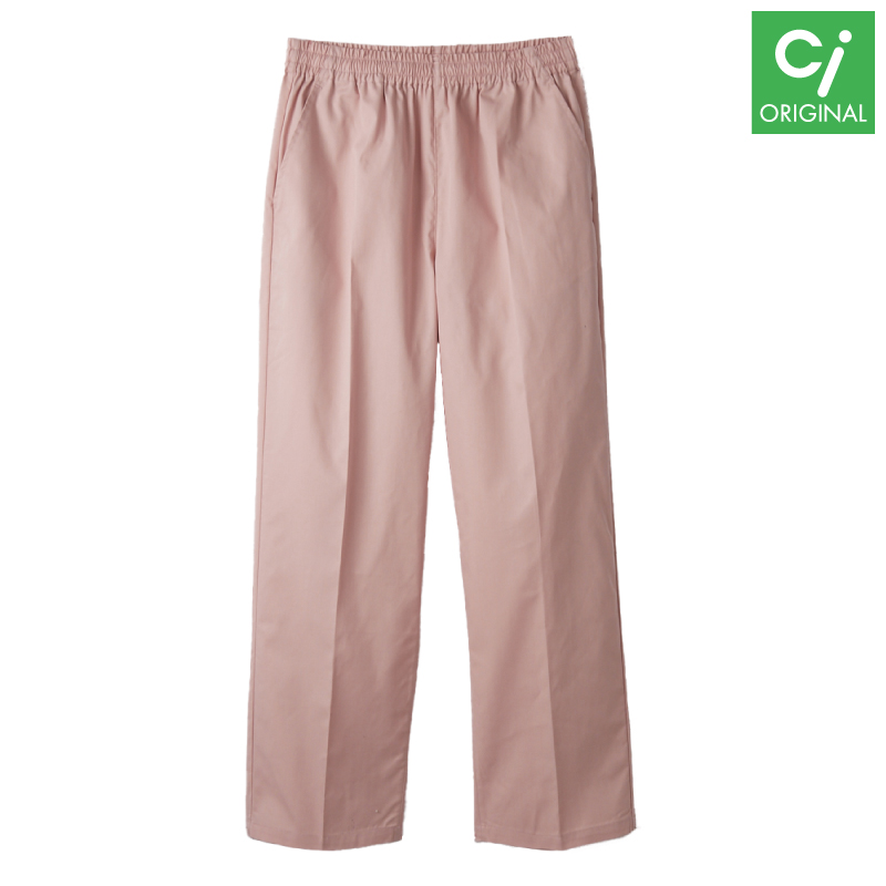 総ゴムウエスト(ひも入り)、両脇ポケット、右後ろポケット、裾上げ済