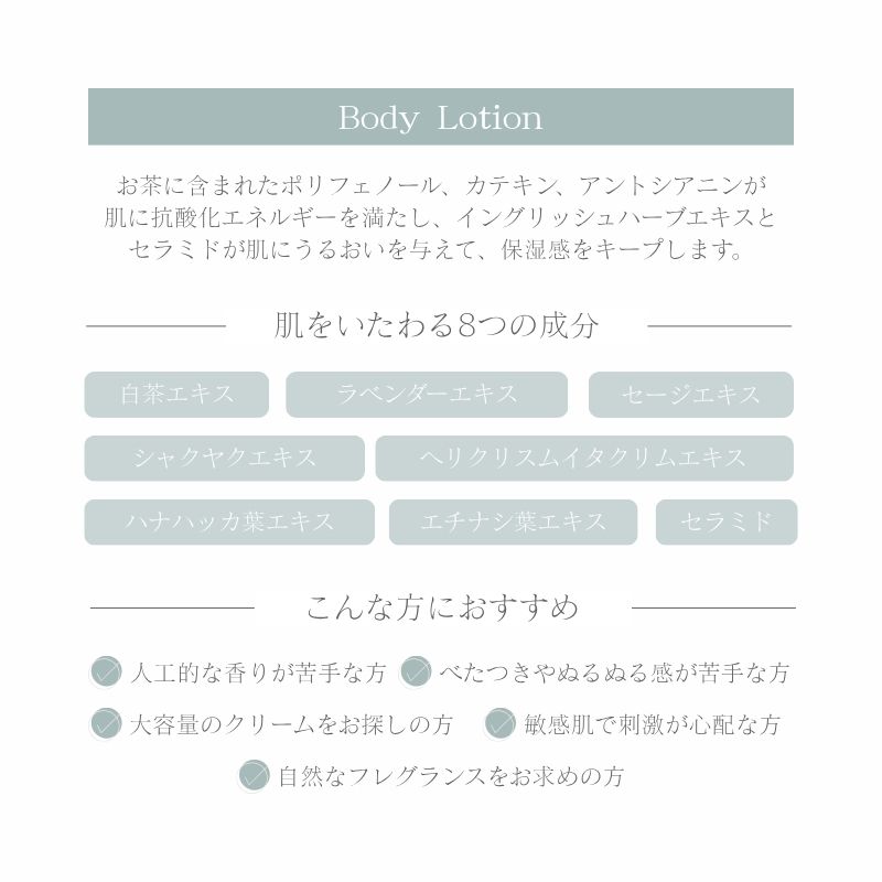 成分 水、グリセリン、トリ(カプリル酸/カプリン酸)グリセリル、香料、セタノール、1,2-ヘキサンジオール、ステアリン酸ポリグリセリル-2、ステアリン酸グリセリル、ヒドロキシアセトフェノン、ステアリルアルコール、カルボマー、アルギニン、ステアリン酸グリセリル(SE)、ポリアクリル酸Na、エチルヘキシルグリセリン、水添ポリデセン、EDTA-2Na、ヒドロキシエチルセルロース、ミリスチルアルコール、トリデセス-6、(C11-13)イソパラフェン、水添レシチン、(サッカロミセス/キシリヌム)/紅茶発酵物、BG、ラベンダーエキス、ホソババレンギクエキス、ヘリクリスムイタクリムエキス、ハナハッカエキス、シャクヤクエキス、セージエキス、チャ葉エキス、セラミドNP、リモネン、リナロール