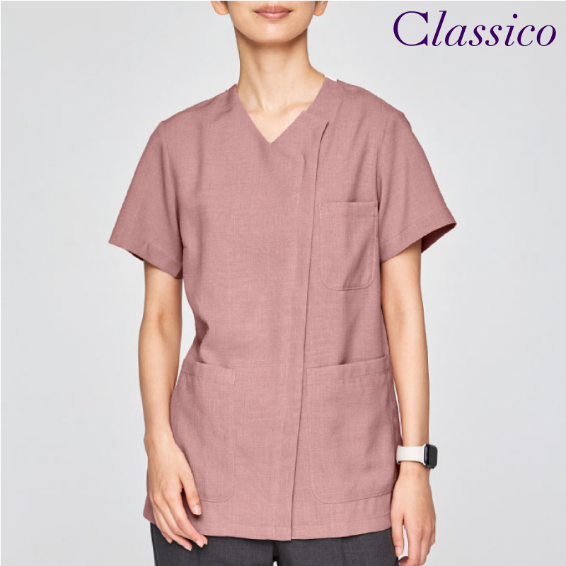 軽やかで爽やかな印象の杢調素材。首後ろとループに施したカラーに合わせた配色デザイン。少しAラインを感じるシルエットで素材に合わせた爽やかで柔らかいトーンのカラーバリエーションになっています。【吸水速乾】【EASY CARE】