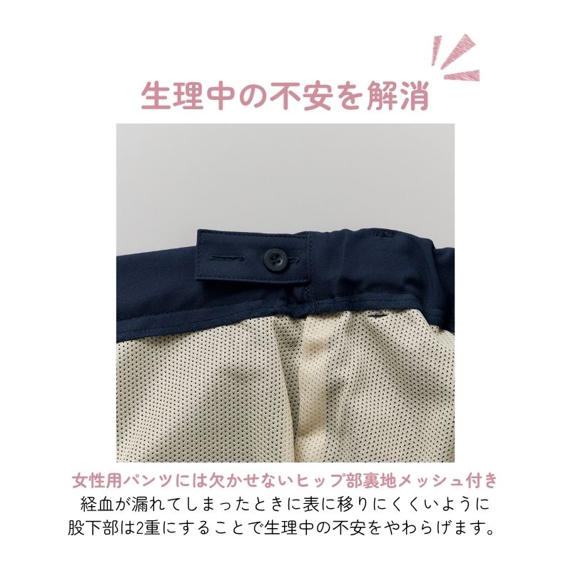 女性用パンツには欠かせないヒップ部裏地メッシュ付き。