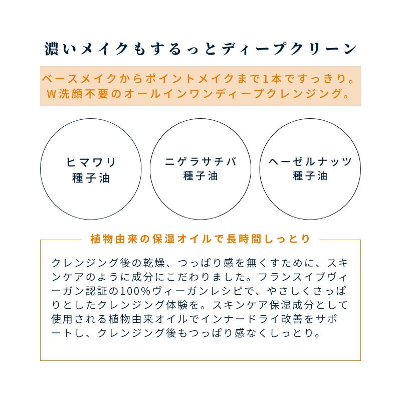ベースメイクからポイントメイクまで1本ですっきり。W洗顔不要のオールインワンディープクレンジング。