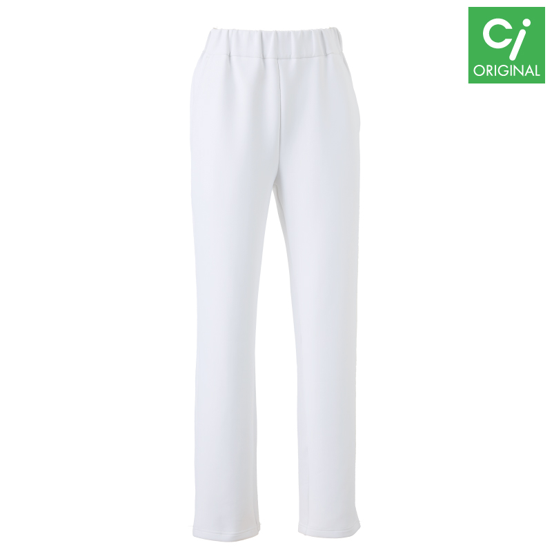 <スリムストレートパンツ>総ゴムウエスト、両脇ポケット、右後ろポケット、裾上げ済