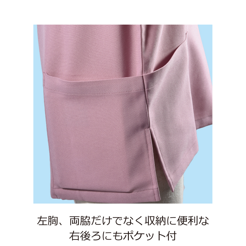 <プルオーバースクラブ>右肩スナップボタン、左胸ポケット、両脇ポケット、右後ろポケット、両脇スリット