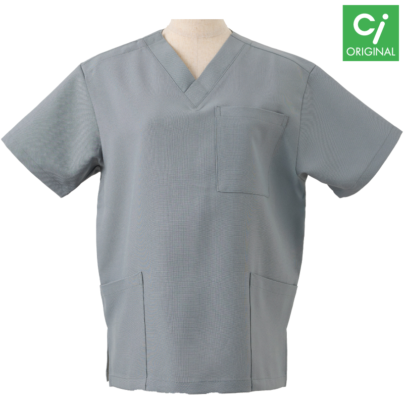 <プルオーバースクラブ>右肩スナップボタン、左胸ポケット、両脇ポケット、右後ろポケット、両脇スリット