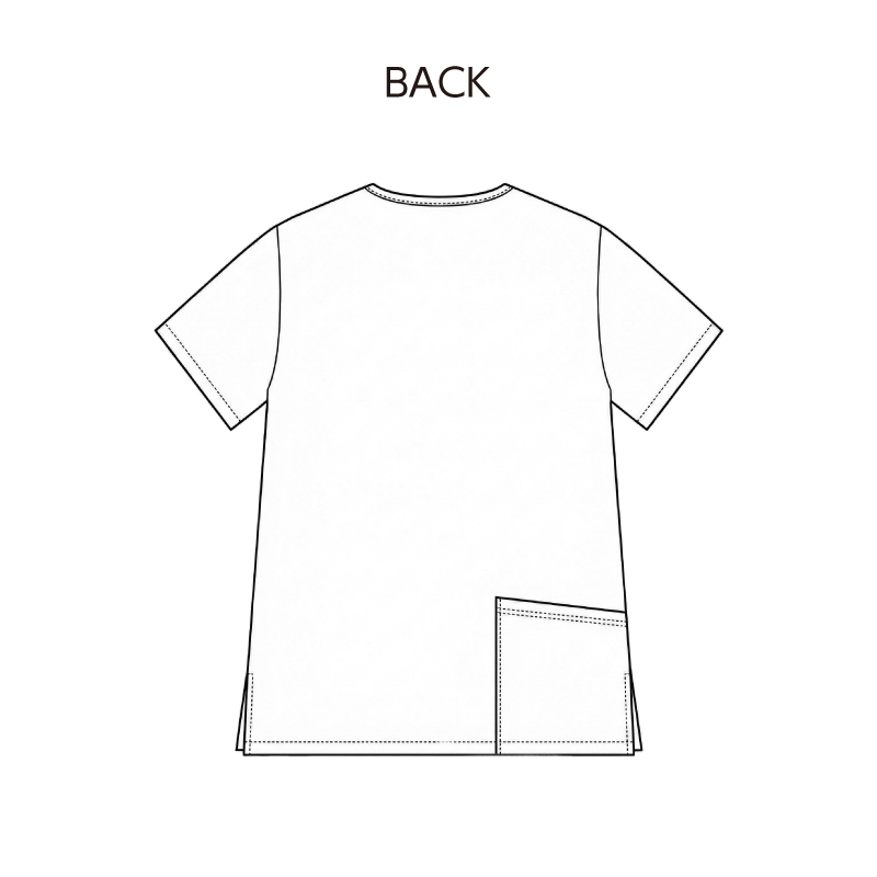 <プルオーバースクラブ>右肩スナップボタン、左胸ポケット、両脇ポケット、右後ろポケット、両脇スリット