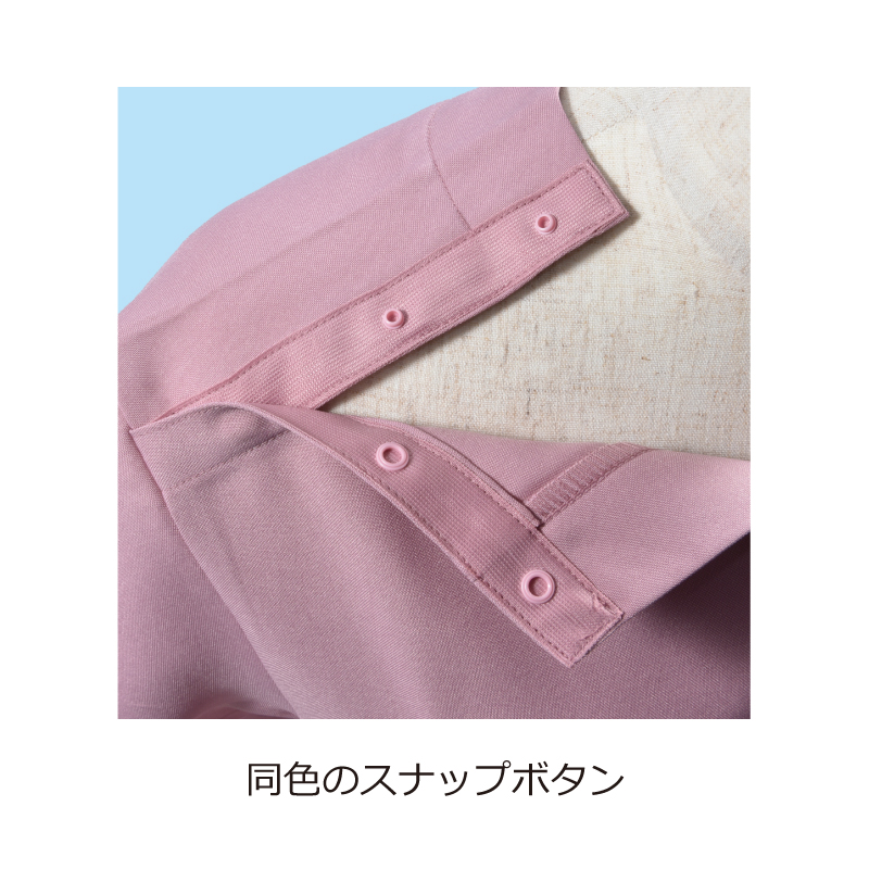 <プルオーバースクラブ>右肩スナップボタン、左胸ポケット、両脇ポケット、右後ろポケット、両脇スリット