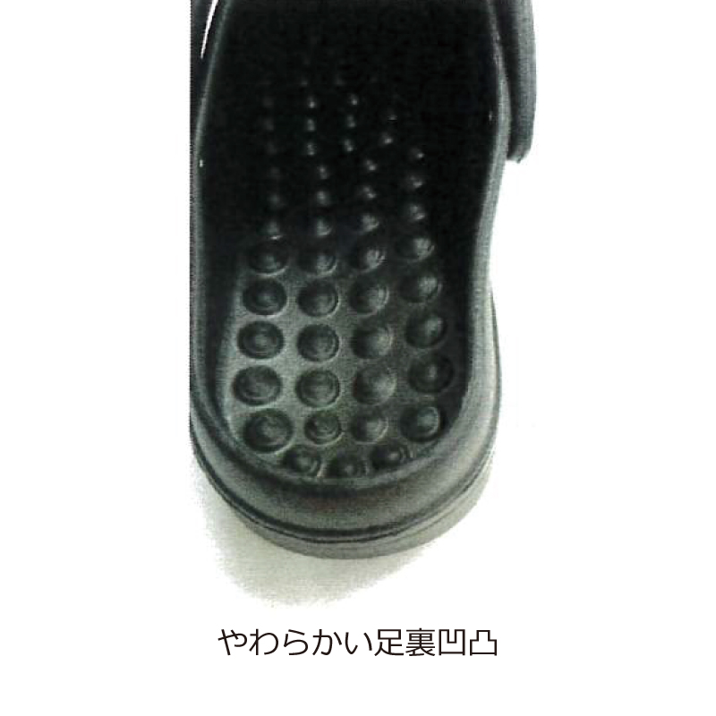 エバロン素材である柔らかくクッション性があり、心地よくフィットする一体成形サンダル。足裏に凹凸があり、心地良い刺激で血行促進が期待できるサンダルです。