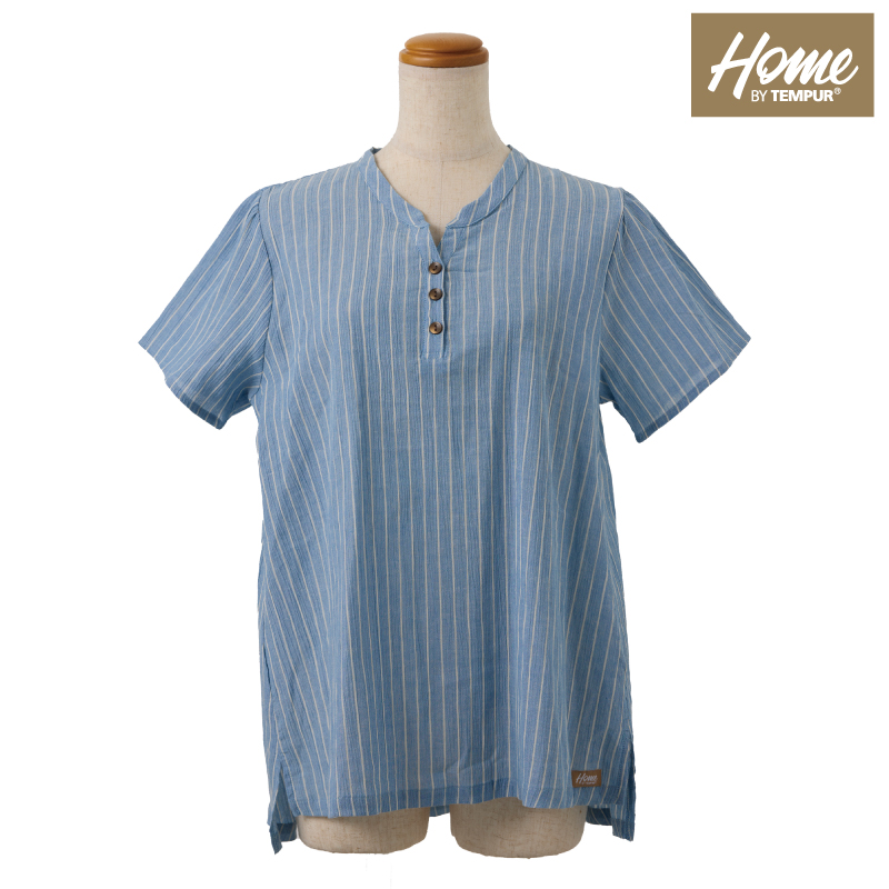 ホームバイテンピュール コットンヘンリーネック半袖 3906-33 ブルーストライプ L