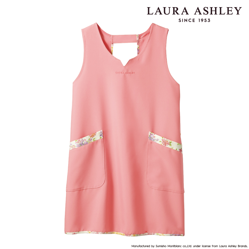 ローラアシュレイ 襟スリットエプロン LW501 ローズ×ピンク