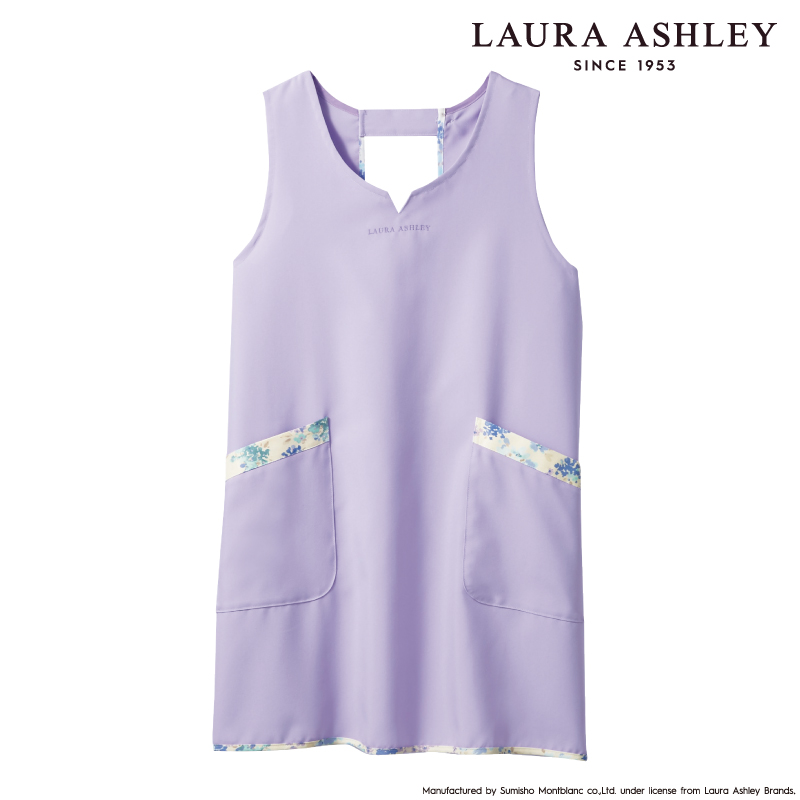 ローラアシュレイ 襟スリットエプロン LW501 ラベンダー×ブルー