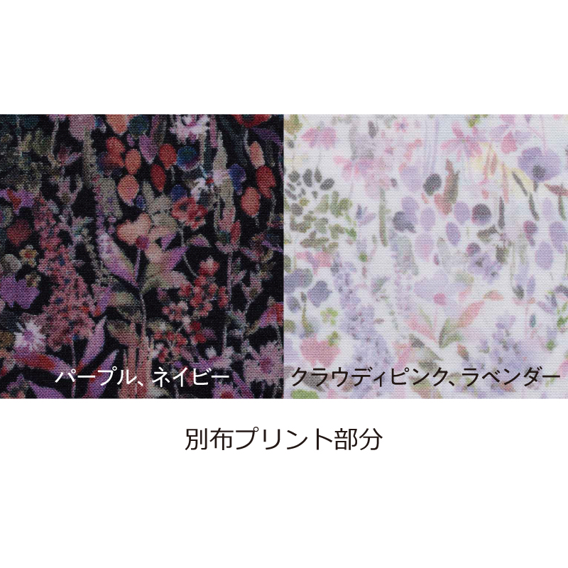 繊細な小花柄が代表的なリバティ社のテキスタイル。その小花プリント柄を部分的に使った上品で女性らしいスクラブ<br><br>前ファスナー、左胸ポケット、両脇ポケット(右ダブルポケット)、<br>右ウエストループ| サイズ | 胸囲(cm) | 肩幅(cm) | 袖丈(cm) | 着丈(cm) |