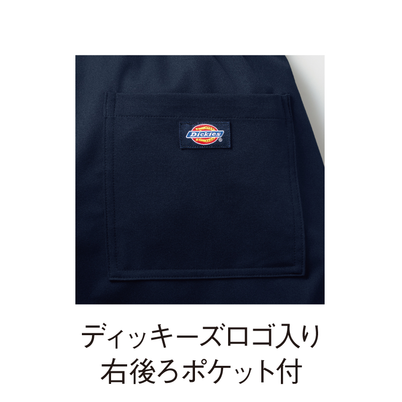 総ゴムウエスト(ひも入り)、両脇ポケット、右後ろポケット、裾上げ済