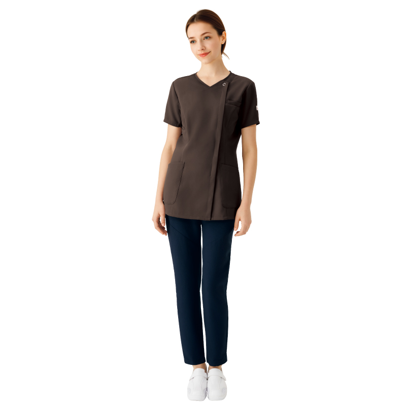 美肌見えカラーのジップスクラブ程よくウエストがシェイプされたフェミニンライン