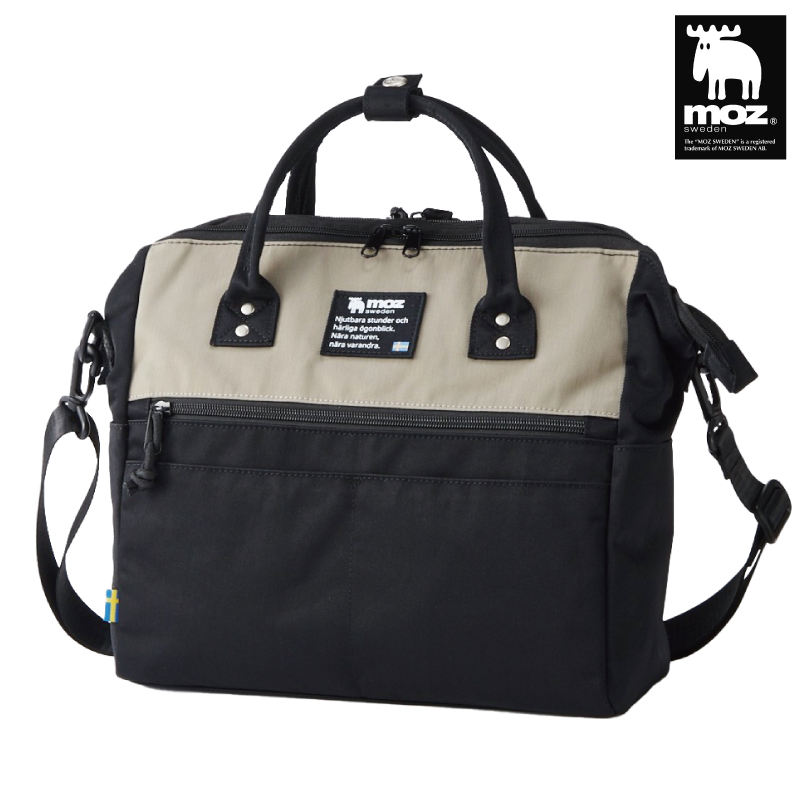 moz 10ポケットガバッと開く はっ水2WAYショルダーバッグ 黒×グレー