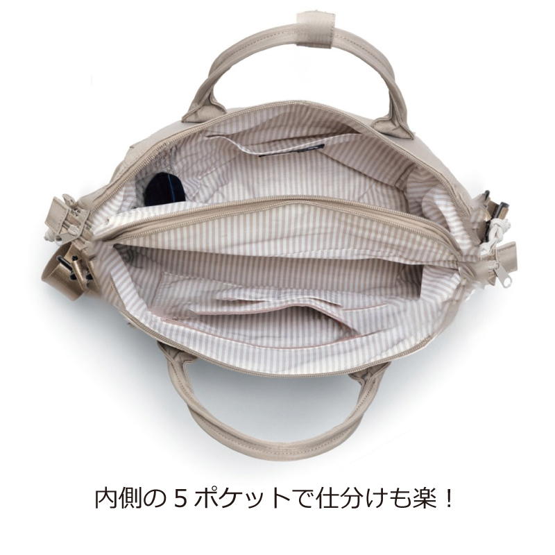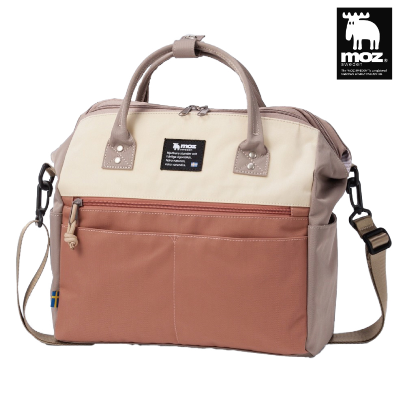 moz 10ポケットガバッと開く はっ水2WAYショルダーバッグ グレー×ダスティピンク