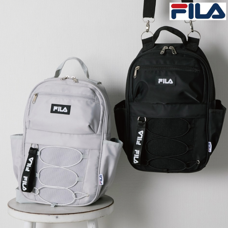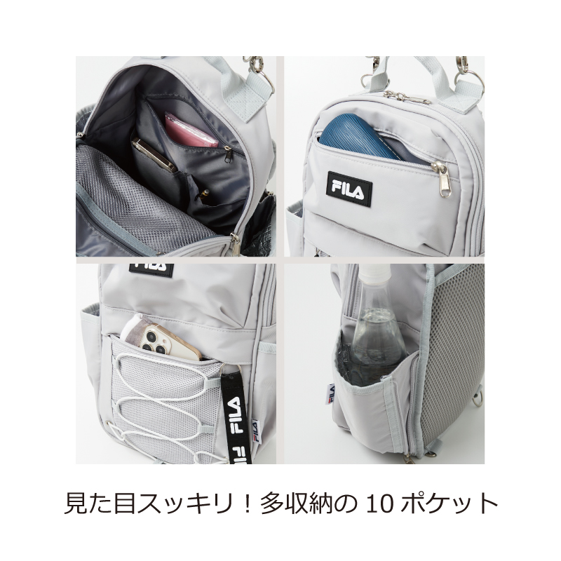 FILA 肩ひも長め10ポケットはっ水2WAYボディバッグ グレー