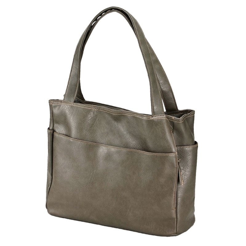 やわらかで持ちやすい合成皮革素材の10ポケット付きトート