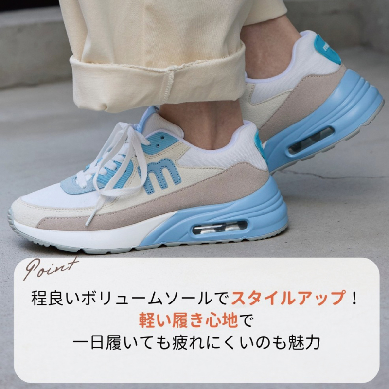 moz(モズ)厚底コンビカラースニーカー(ワイズ3E) サックス 24.0cm
