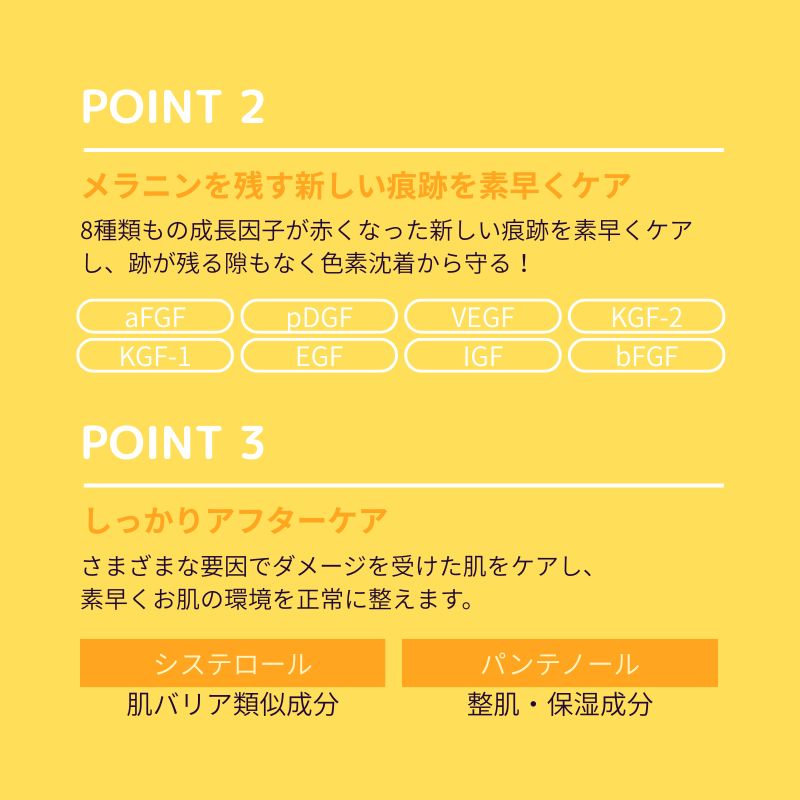8種類もの成長因子が赤くなった新しい痕跡を素早くケアし、