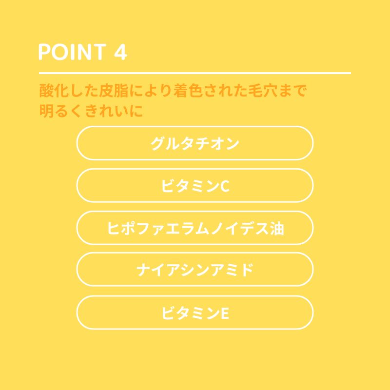 酸化した皮脂により着色された毛穴まで明るくきれいに