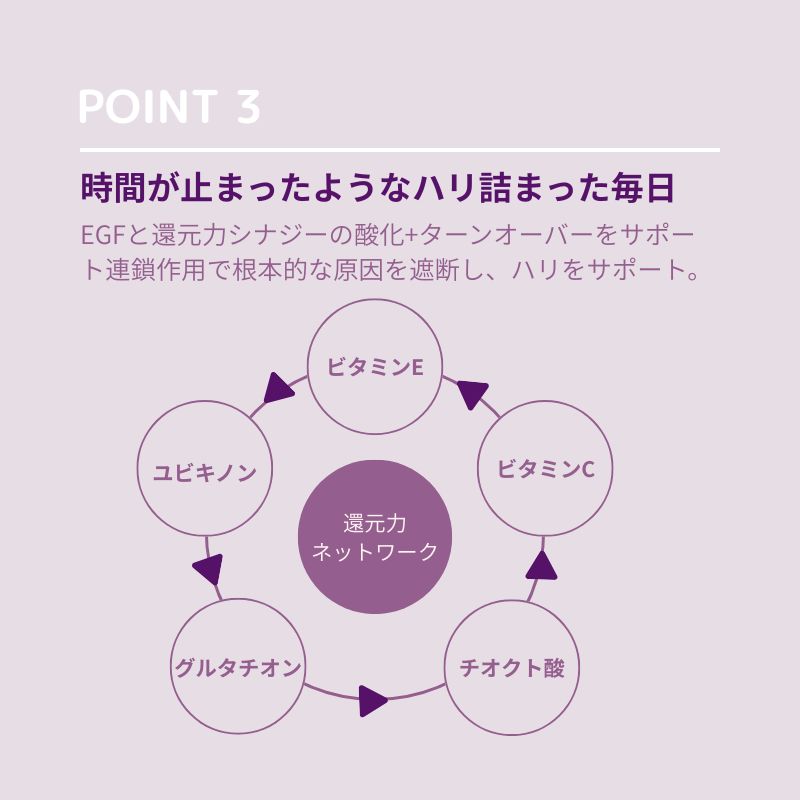 EGFと還元力シナジーの酸化+ターンオーバーをサポート連鎖作用で
